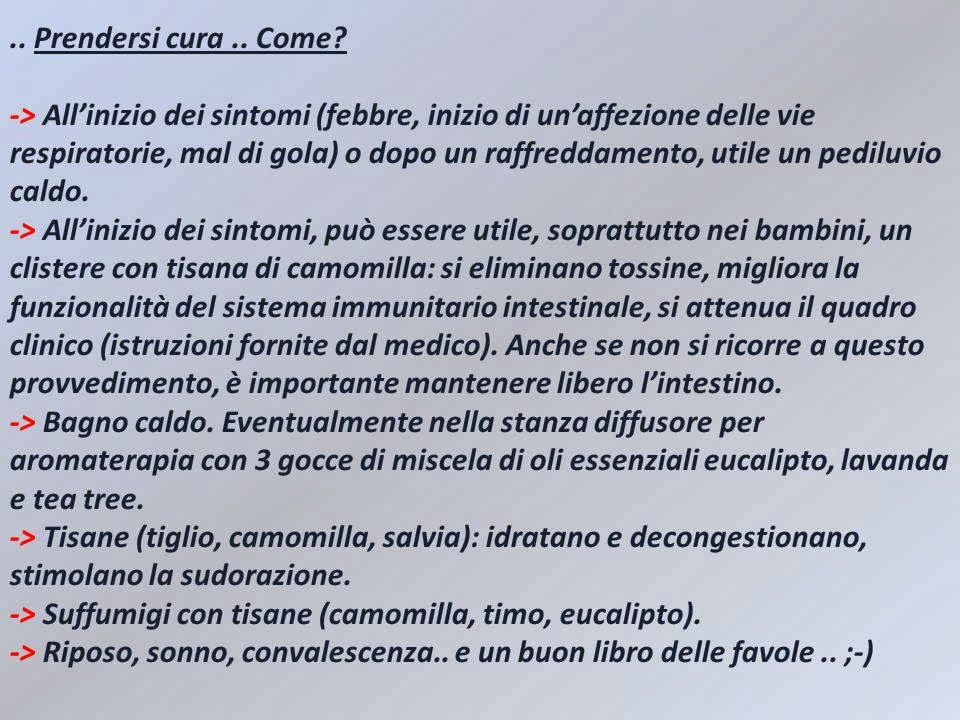 Di seguito, per chi non avesse preso appunti e per chi era assente, trovate le slide curate da Marina con preziosi suggerimenti per affrontare meglio l'inverno. Alla prossima e grazie a tutti della partecipazione calorosa!!!